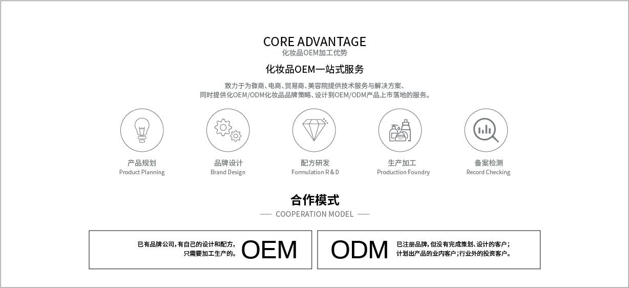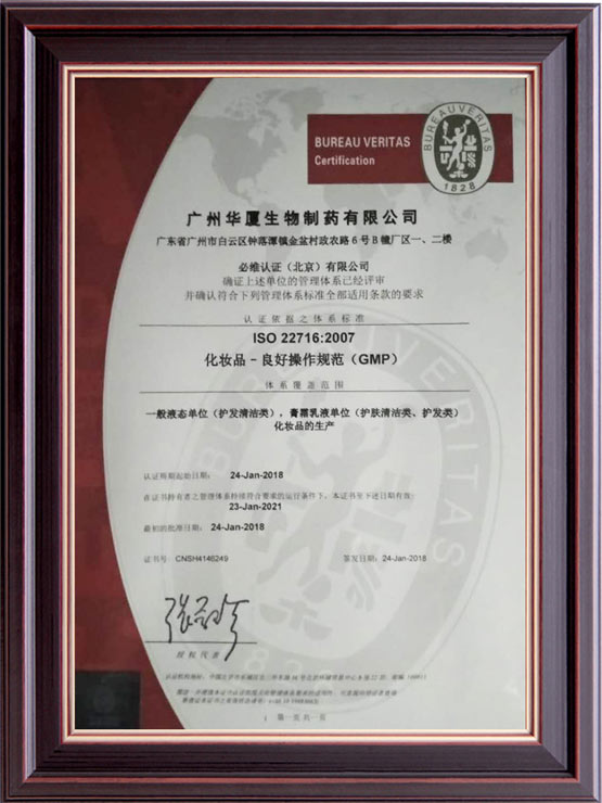 公司始創(chuàng)建于2012年,經(jīng)過八年的健康發(fā)展,已經(jīng)成為可以從事妝字號、消字號、械字號等系列產(chǎn)品生產(chǎn)加工的大型企業(yè)。企業(yè)坐落在美麗的廣州白云區(qū)鐘樓潭鎮(zhèn),擁有面積超過15,000平方米的生產(chǎn)廠房。廠房寬敞明亮,設(shè)計(jì)科學(xué)新進(jìn),擁有十萬級的生產(chǎn)車間,局部環(huán)境可以達(dá)到一萬級別;設(shè)備多采用新進(jìn)的進(jìn)口設(shè)備,自動化程度非常高,擁有一流的生產(chǎn)設(shè)施。工廠同時(shí)通過了ISO22716和GMCP質(zhì)量管理認(rèn)證,擁有一流的質(zhì)量管理體系。廠